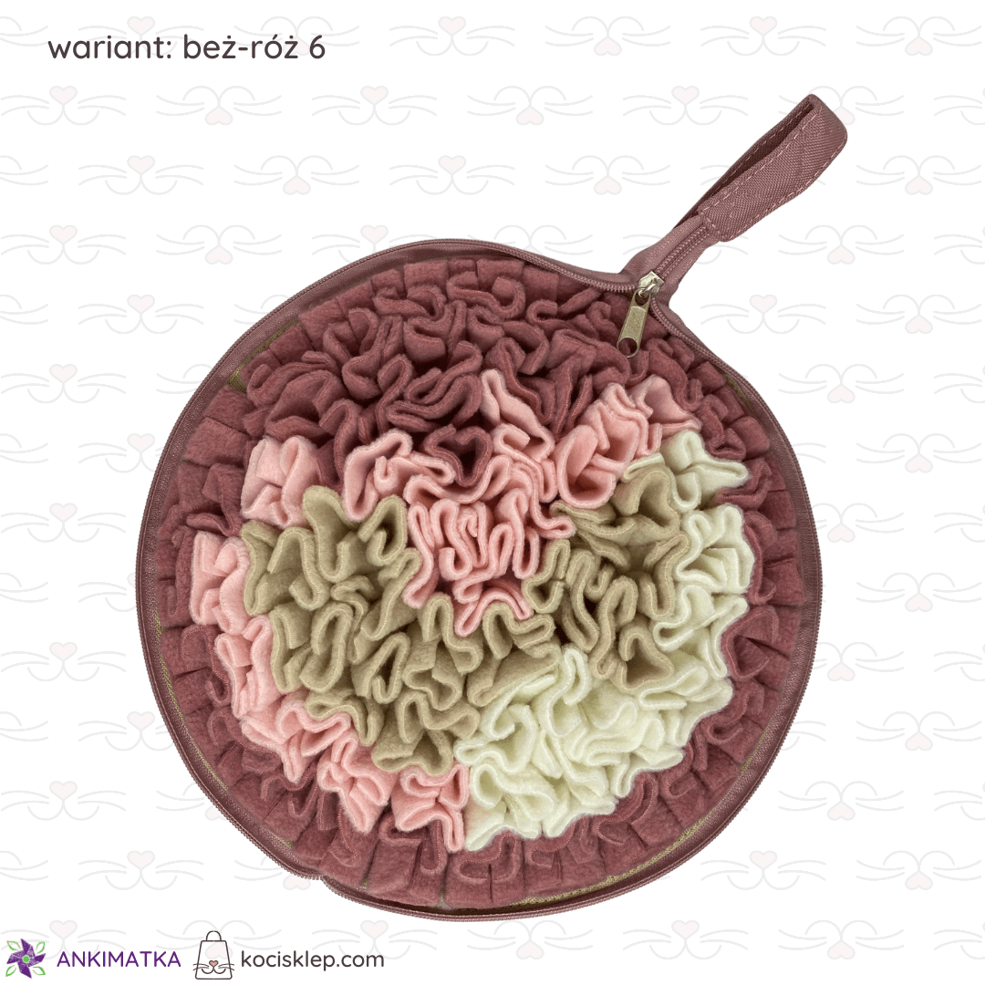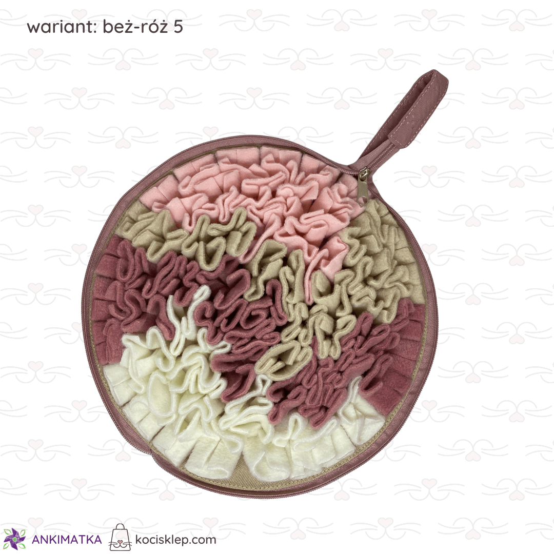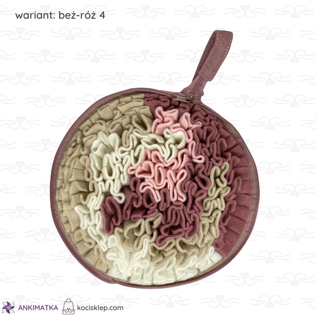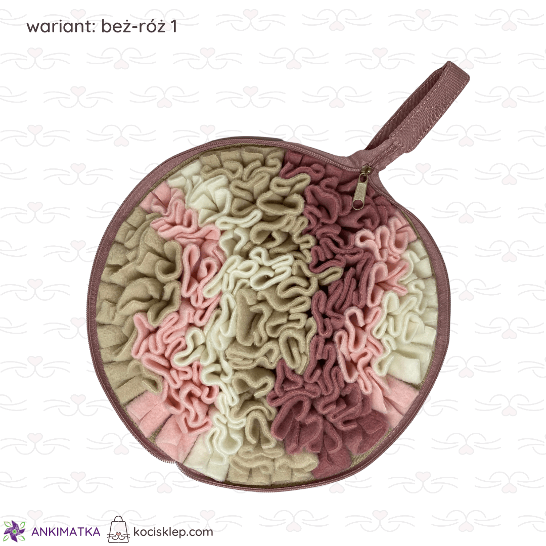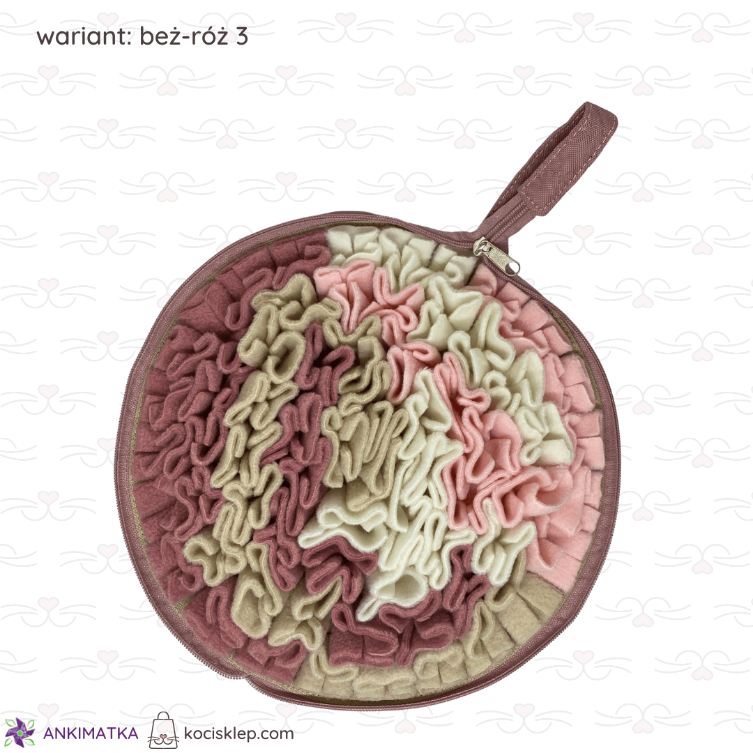 Beżowo-różowa mata węchowa Calzone zapinana na suwak.